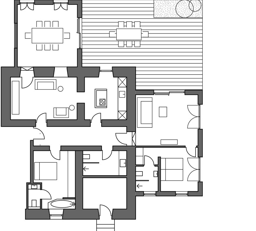 Ein Wohnzimmer in der Suite, ein weiteres vor der Küche und ein zusätzlicher Raum zwischen Küche und Terrasse - hier ist genug Platz zum Arbeiten oder Abschalten.